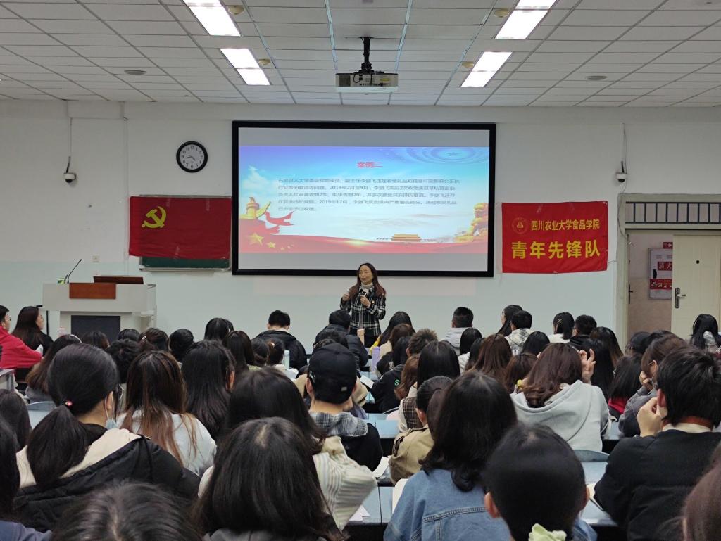 2021年3月26日下午16:30食品学院入党积极分子培训班在十教A-202开展以“中国共产党优良传统和作风” 为题的专题党课。食品学院副院长、食品加工与安全研究所所长、党委委员秦文教授授课,食品学院党委办公室副主任兼团委副书记彭小芮老师出席,2021年上半年入党积极分子培训班及青马班全体学员参加。