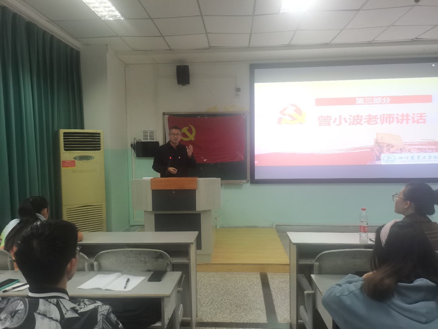 最后,曾小波老师肯定了同学们在培训班的学习成果,并强调道:“好记性不如烂笔头,每次开会时都应准备好笔记本做好笔记。希望各位入党积极分子继续加强政治理论学习,用先进的思想武装头脑,增强身份意识;继续加强专业知识学习,主动用专业理论指导实践,努力成为社会和行业需要的有用人才,为食品行业的发展做出贡献。”