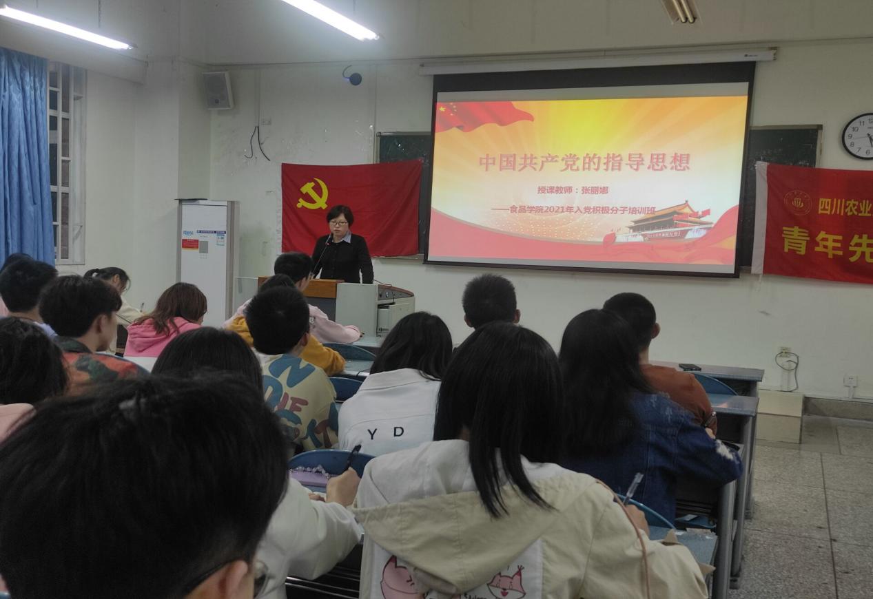 10月9日下午4:30,食品学院入党积极分子班第三次党课在1教110开展。食品学院党委办公室主任兼团委书记张丽娜老师和食品学院党委办公室副主任兼团委副书记彭小芮老师分别以“中国共产党的指导思想”和“中国共产党的性质、宗旨和组织原则”为主题开展专题党课。