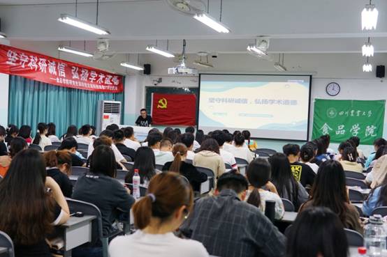 为了解学院学生对科研诚信和学术道德的思想意识和行为认知,研究生第四、五、六党支部面向430余名研究生、高年级本科生开展线上线下问卷调查。支部党员还围绕学术诚信主题访谈10余位科研工作者、法学专业有关专家,从心理、行为、法律等多个层面全面了解科研诚信和学术道德的重要意义,并听取行动建议。食品学院院长方正锋教授强调:面对学术不端问题,一要找准根本原因坚决杜绝,二是坚决破除“四唯”,三要建立合理的学术评价体系,同时还特别强调学术研究的目的是追求真理,造福社会,研究生应将科研活动和社会主义核心价值观以及川农大校训紧密结合起来,将理论践行到实际行动中。食品质量与安全系主任陈洪说到:“从内涵角度讲,学术不端和食品安全都是诚信方面的问题,如果在食品科研过程中出现学术不端行为,那么未来有可能会直接导致食品安全问题。”学院党委副书记、纪委书记汤瑞瑞表示:“对于学术不端,我们的态度是绝对零容忍,希望大家将科研诚信作为一个基本准则加以遵守,将之作为自己的行为准则。”