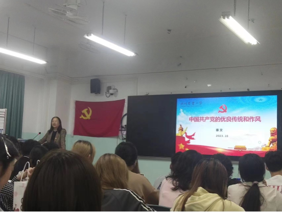 秦文从党的优良作风的形成与发展过程,党的优良作风的主要内容,新时代党的作风建设与巨大成就三个方面来讲解。她以党的发展壮大过程为时间导线,介绍了党发展历程上所经历的重要事件,从而引出党的优良作风的形成和发展过程,其中,重点向学院们介绍了几大会议的核心思想,“三反”,“五反”以及“八个坚持,八个反对”的要求,使学员们直观深切的感受和认识了党的优良作风的形成过程。