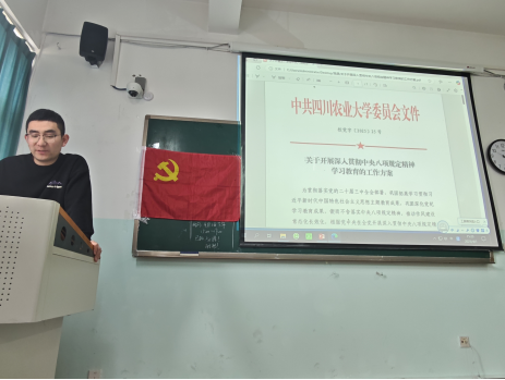 为贯彻落实中央党的建设工作领导小组会议精神和校党委关于开展深入贯彻中央八项规定精神学习教育动员会议精神,推动学习教育有序有效开展,4月1日下午,食品学院各党支部分别召开了深入贯彻中央八项规定精神学习教育动员部署会。