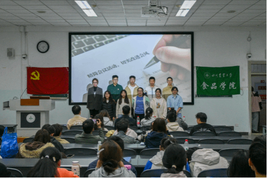作风建设永远在路上,中央八项规定是新时代全面从严治党的重要抓手。为让纪律要求真正入脑入心,食品学院于10月24日组织入党积极分子培训班学员,以中央八项规定为主题,通过情景剧、合唱、朗诵等鲜活形式开展主题实践活动,将抽象精神转化为具象演绎,在沉浸式体验中引导青年学子淬炼初心、勇担使命。