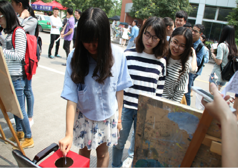 上午10点半左右,活动尚处于准备阶段,各组积极分子便积极到场参加活动。正式开始时,活动场地便被围观的同学堵得水泄不通,现场气氛热闹不已,十分活跃。更有积极分子为宣传本组所述的知识内容,大胆热情地到桂花大道与杏苑食堂门口向陌生的同学进行拉票宣传,围观同学无不细心欣赏各组成果并踊跃为自己喜欢的画报投上宝贵的一票。发自内心的兴奋与集体荣誉感让入党积极分子对朋友或是陌生的人敞开心扉、绽放笑颜,烈日下的他们忘记饥饿、无视艳阳、精神抖擞。