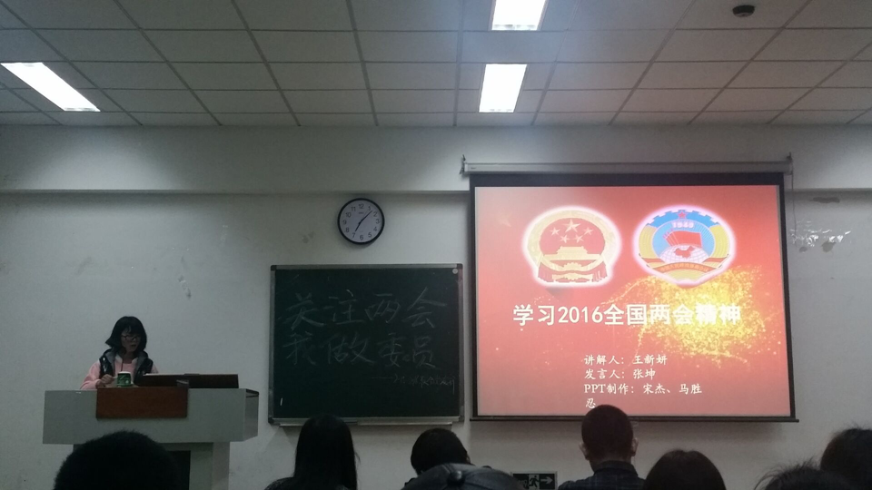 2016年3月25日晚七点,2014、2015级本科生联合党支部成功召开了本学期第一次题为“关注两会,我做委员”的党日活动。