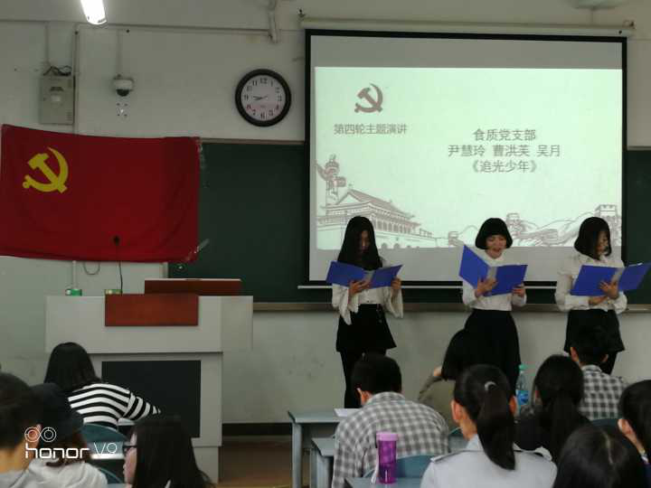 各本科生党支部围绕着入党前后思想、行动上的变化,结合专业学习与实践活动,就支部党建整体建设情况进行多种形式的主题演讲。其中本科生食工党支部的张逸仙同志声情并茂地为同志们讲述了她在入党前后思想的变化,以及身边优秀的党员代表的故事;食质党支部的曹洪芙、吴月、尹惠玲三位同志,则是以诗朗诵的形式,展示了大学生党支部的精神风采。除此之外,还有精彩的知识竞答环节,同志们围绕着两学一做、新党章、习近平总书记系列重要讲话、“两会”的相关知识积极作答,以食工党支部得分最高,拔得头筹。
