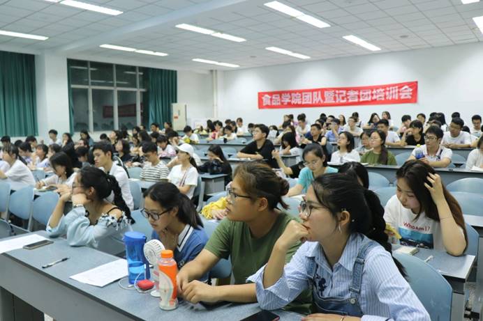 6月21日晚,由食品学院主办,食品学院团委实践部承办的2019年暑期“三下乡”社会实践团队暨记者团培训会于十教A202顺利举行。此次活动到场嘉宾有食品学院学生会主席周茜,团委实践部牟真、新青年通讯社闵鑫来、食品学院宣传部唐海林主讲,各实践团队队长、通讯员及记者团成员120余人与会倾听。