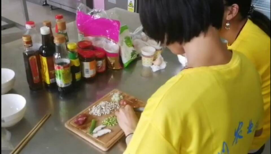 第三步则是将馅料塞至竹笋中,这就要考验队员们的动手操作能力了,如何在不弄破竹笋的前提条件下将馅料完美地加入到空心内。