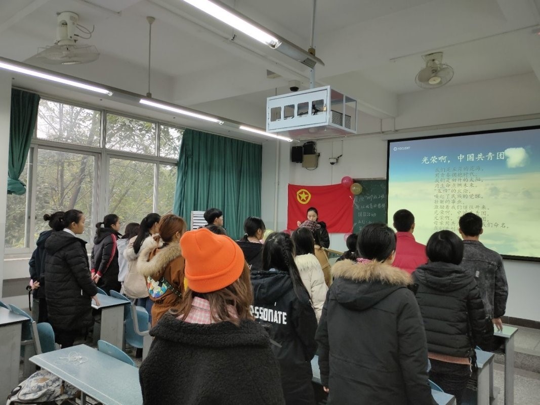 首先是全班同学全体起立齐唱团歌。然后是主题诗歌朗诵,由曾德洁、岑永好两位同学完成,他们声情并茂的演讲让同学们情不自禁地沉浸在其中。之后,全体观看优秀青年视频,同学们感到了鼓舞与向往,周睫姝,陈屿玲等同学分别发表了自己的观后感,说出了大家的心声。接下来,由余昌博同学进行了“青春·理想”主题演讲,演讲结束后,大家爆发出激烈的掌声。其后,全体齐唱励志歌曲《我相信》,同学们很有热情,唱出了青春的豪迈与自信。之后,主持人邀请一位同学朗读了一段习近平总书记对青年的寄语。主持人还邀请了班助对本次团日活动进行了点评。最后,全体齐唱团歌,在富有激情的歌声中,活动圆满结束。