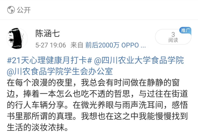 活动采用线上打卡的形式,每一天参加活动的同学需要根据不同的打卡内容发布自己的观点,这些内容或而温馨,或而充满哲学,同学们积极配合,发表出了不少发人深思的观点,也让更多的人明白,心灵快乐的传递有多么温暖人心。