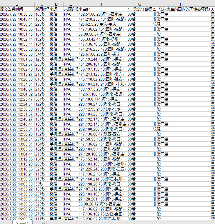 线上调研问卷调查:2020年7月27日至30日,对关于环境问题和人类的环保意识展开了一系列的网上问卷调查,此问卷的受众人群和地区不限。此后收集了调查问卷的数据,并对调查报告进行分析和总结。