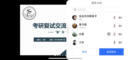 3月21日,食品学院创新创业服务中心顺利举办考研复试经验分享会(四)。此次分享会邀请成功考研中国海洋大学以及华中农业大学的食品学院优秀毕业生尹慧玲、彭林、杨心彪和张明慧面向近30名同学进行线上考研复试经验分享。