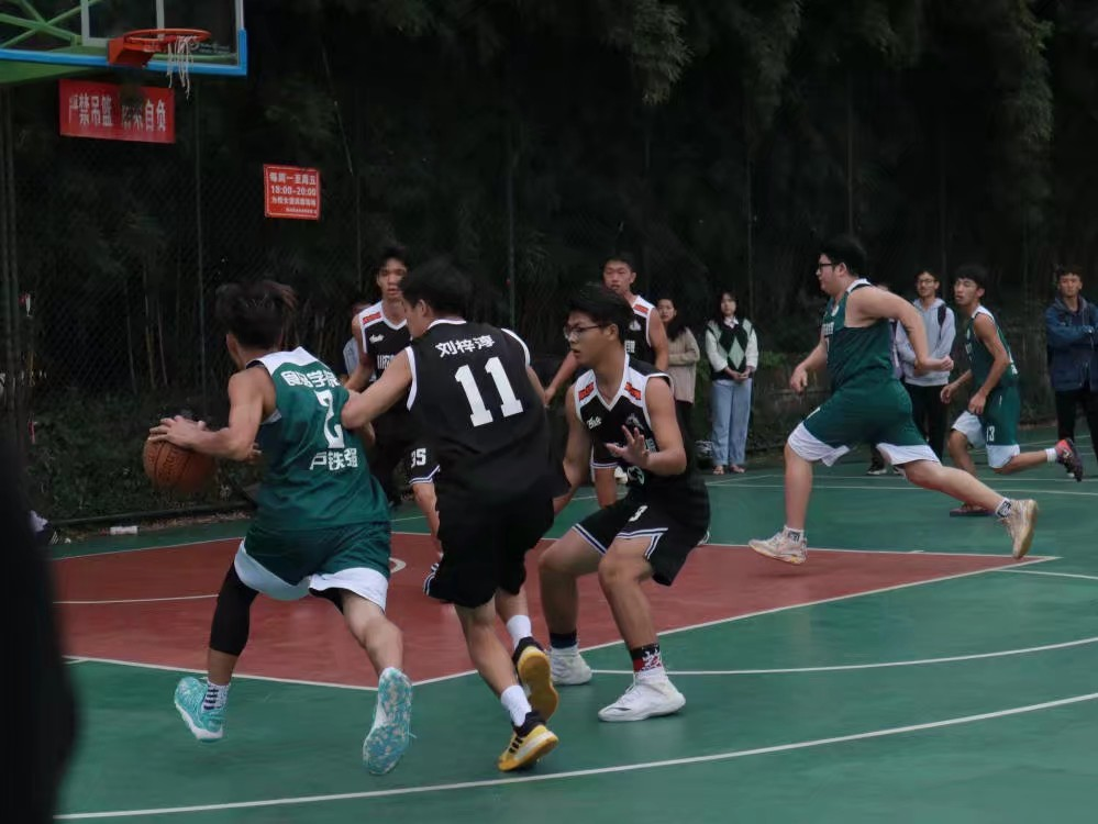 随着裁判员的哨声响起,比赛正式开始。双方球员迅速进入比赛状态,运动员熟练运用着平时练习了无数次的技术动作,运球,挡拆,上篮得分,各类战术穿插使用,一起为在场同学奉献着一场精彩的比赛。记分牌不停地翻动,双方比分交替上升,比赛逐渐进入白热化阶段。不论是男子组还是女子组,都拿出了最好的状态,全力以赴为院争光,打出了一波又一波精彩的配合。男子组双方球员势均力敌,技术娴熟、对抗十分激烈;女子组开局则占据上风,以丝毫不输男子组的拼劲和狠劲,步步为营,稳扎稳打,逐步拉开了分差。场上运动员们激情拼搏,热情的场边观众也在为运动员们加油助威。每一次进球后的呐喊,每一次失误后的鼓励,展现的不仅是对胜利的渴望,更多的是对对手的尊重和对篮球运动的纯粹热爱,让大家深深地体会到篮球的魅力,体育的魅力。比赛接近尾声,男子组比分仍十分焦灼,在比赛的最后一刻,食品学院的运动员仍旧没有丝毫松懈,在仍落后三分的情况下,以一记绝平三分将比赛拖进加时。加时赛双方运动员都拼尽了最后的体力,无奈最终以三分的差距不敌理学院男子组。女子组则在稳固的大比分优势之下,趁势而上、一举拿下首胜。