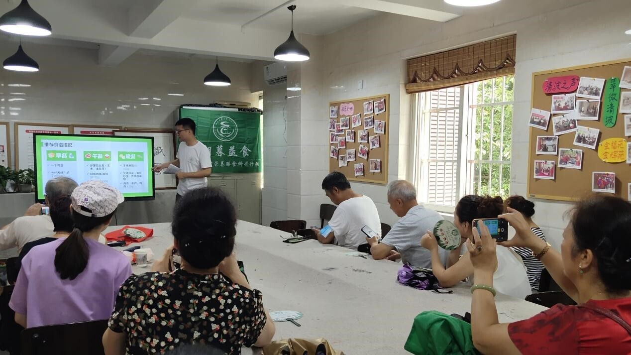 据悉,糖尿病与肿瘤、心脏病并称为对人类健康危害最大的三大疾病,而随着我国经济条件的改善,人们的饮食结构发生巨大变化。近年来,我国糖尿病发病率逐年提高。对此,“八九不离食”团队紧扣“健康中国”主题,返回家乡社区,并针对此现象积极策划并展开了此次科普宣传活动。开展实践前期, “八九不离食”的团队成员在自己掌握的专业知识基础上,结合网络查找、向老师及团队内的研究生师姐请教等多种方法,于宣讲前进行大量的准备工作,确保能在科普过程中讲得正确、讲到重点、讲出效果。同时,团队针对清波社区的具体情况了解到,该社区中老年群体庞大,受糖尿病困扰家庭不在少数。为此,团队制作针对性科普宣讲内容,希望宣讲会能使当地居民了解到如何预防糖尿病并做到合理膳食。