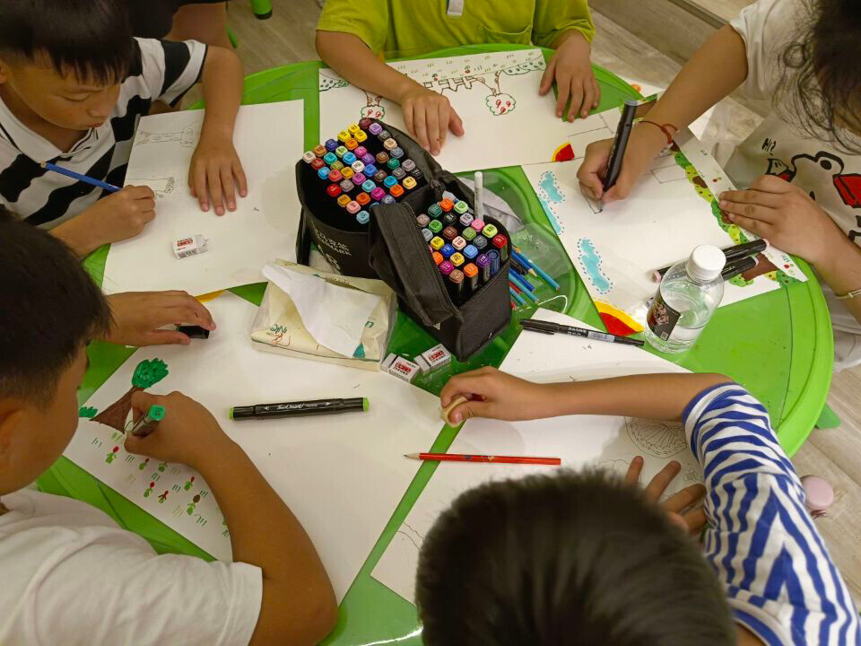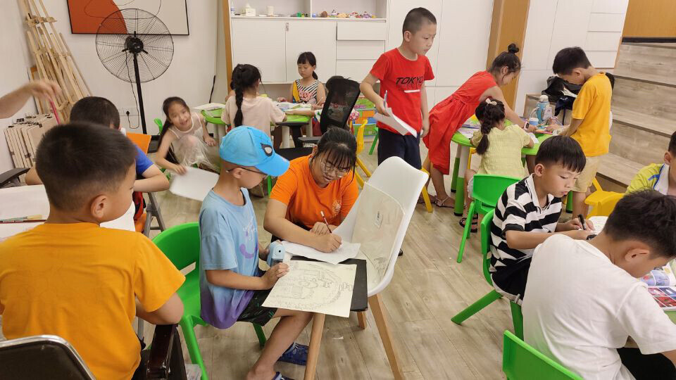 小朋友以“我心目中的学校或家”为主题进行绘画创作。中国青年网通讯员梁慧摄