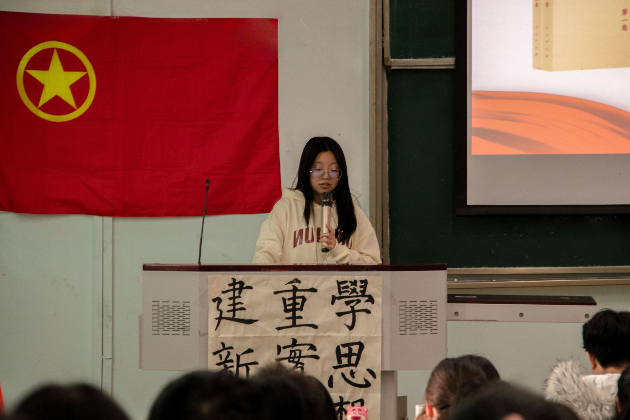 为帮助广大青年更好地理解和掌握马克思主义的基本原理和方法,指导当代青年的实践和思想,把理论学习和时代发展结合起来,真正做到往深里走、往实里走、往心里走。孙彤,胡斌芳,李蓉蓉三位同学分别分享了《习近平著作选读》、《论党的青年工作》、《不断书写奉献青春的时代篇章》等书籍。她们表示想借此机会向同学们阐述深入学习原著原文的重要性,诠释青春奉献的意义和价值,鼓励更多同学读原著、学原文,践行奉献精神。