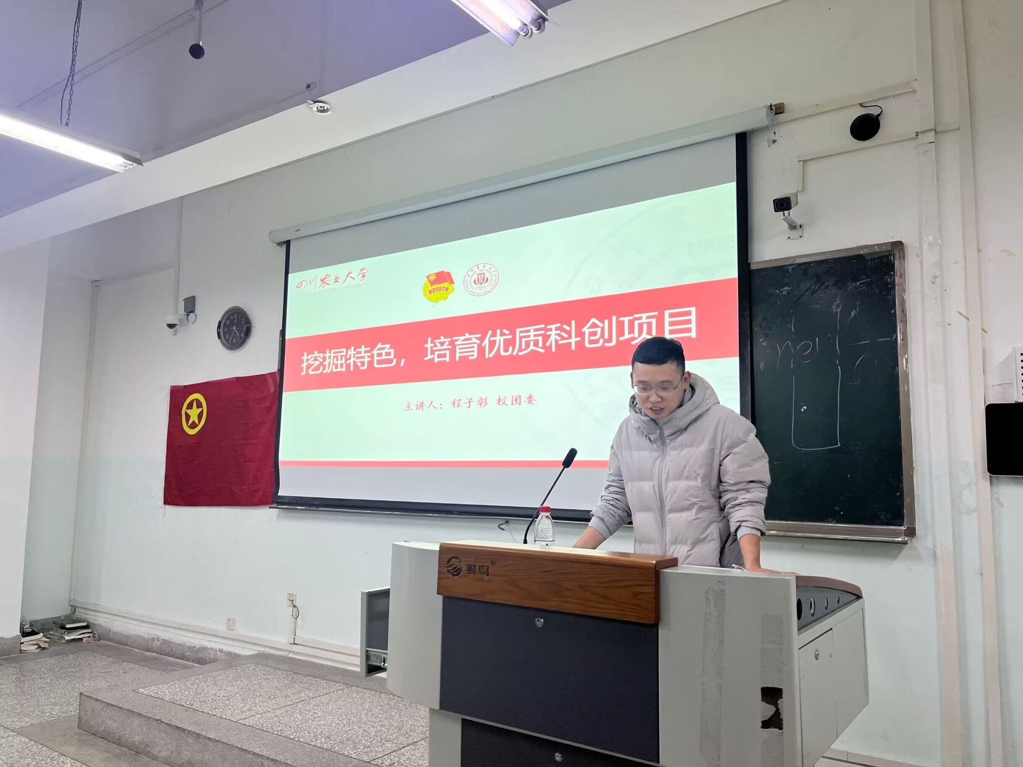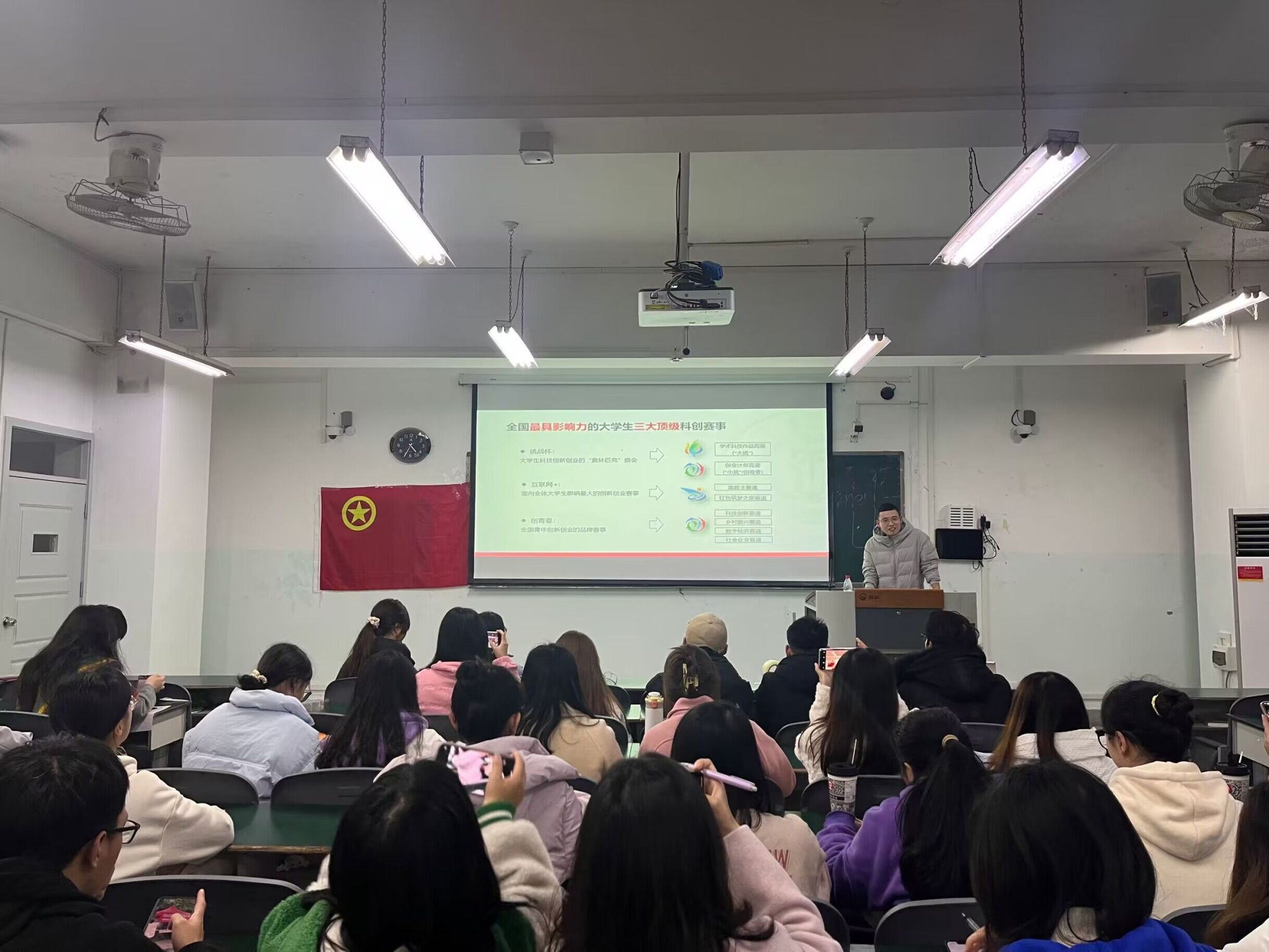 为深入学习创新创业赛事相关知识,鼓励同学结合自身条件积极参加相关竞赛,12月5日下午,校团委程子彰老师为第五期青马班全体学员带来以“挖掘特色,培育优质科创项目”为主题的第三堂理论课。