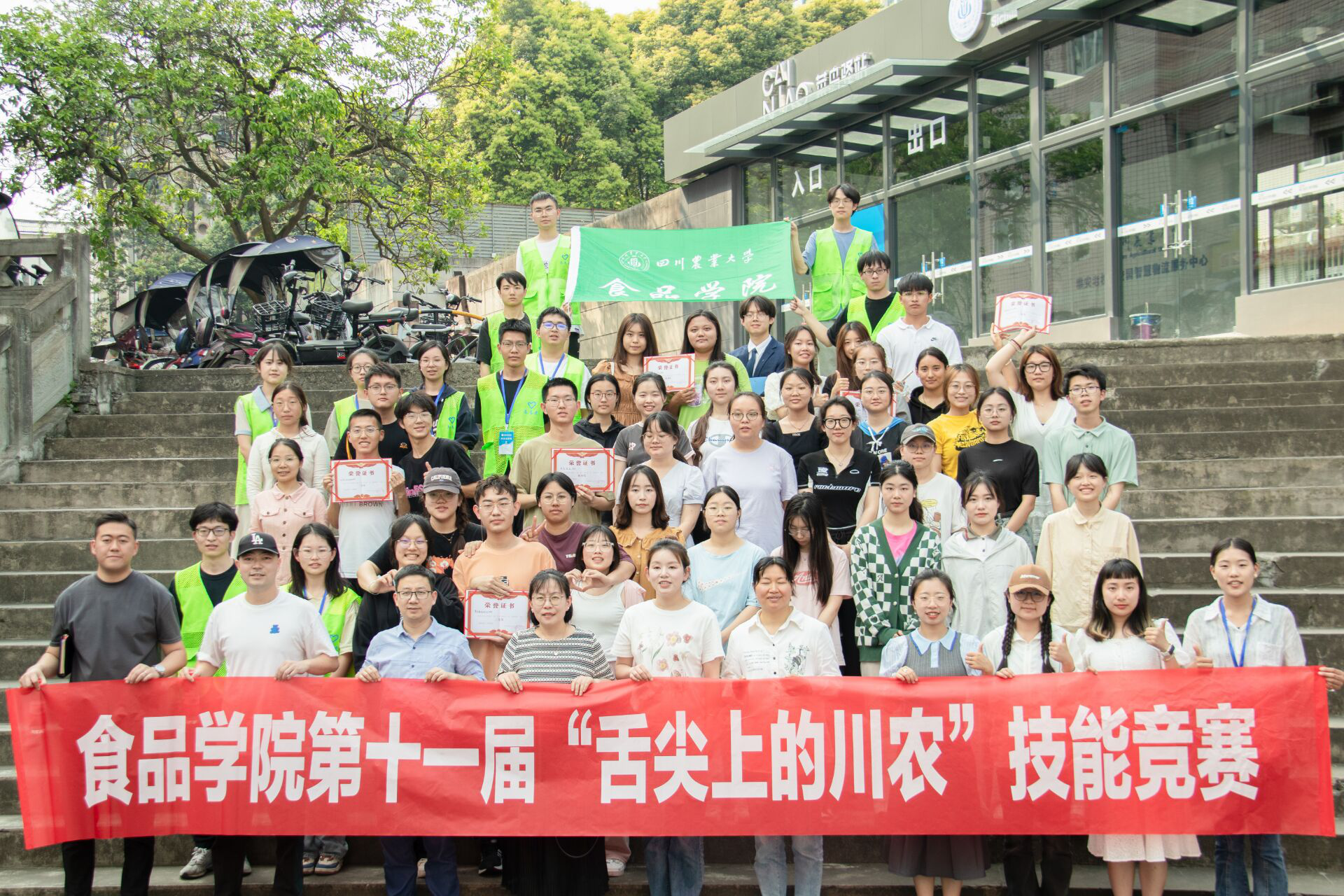 在后勤服务总公司与聚雅楼食堂的支持下,经过现场十支小队激烈的比拼和评委们公正的评分,“料理鼠王队”以菜品营养丰富、理念切合主题等优势在十道色香味俱全的参赛菜品中脱颖而出,获得了本次技能竞赛的冠军。