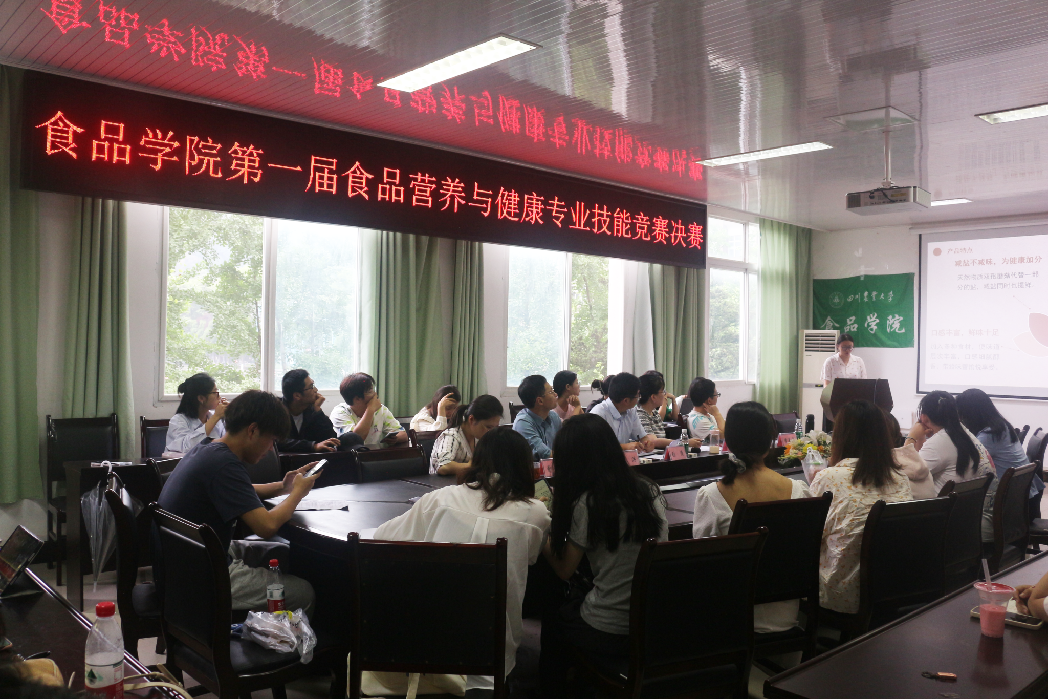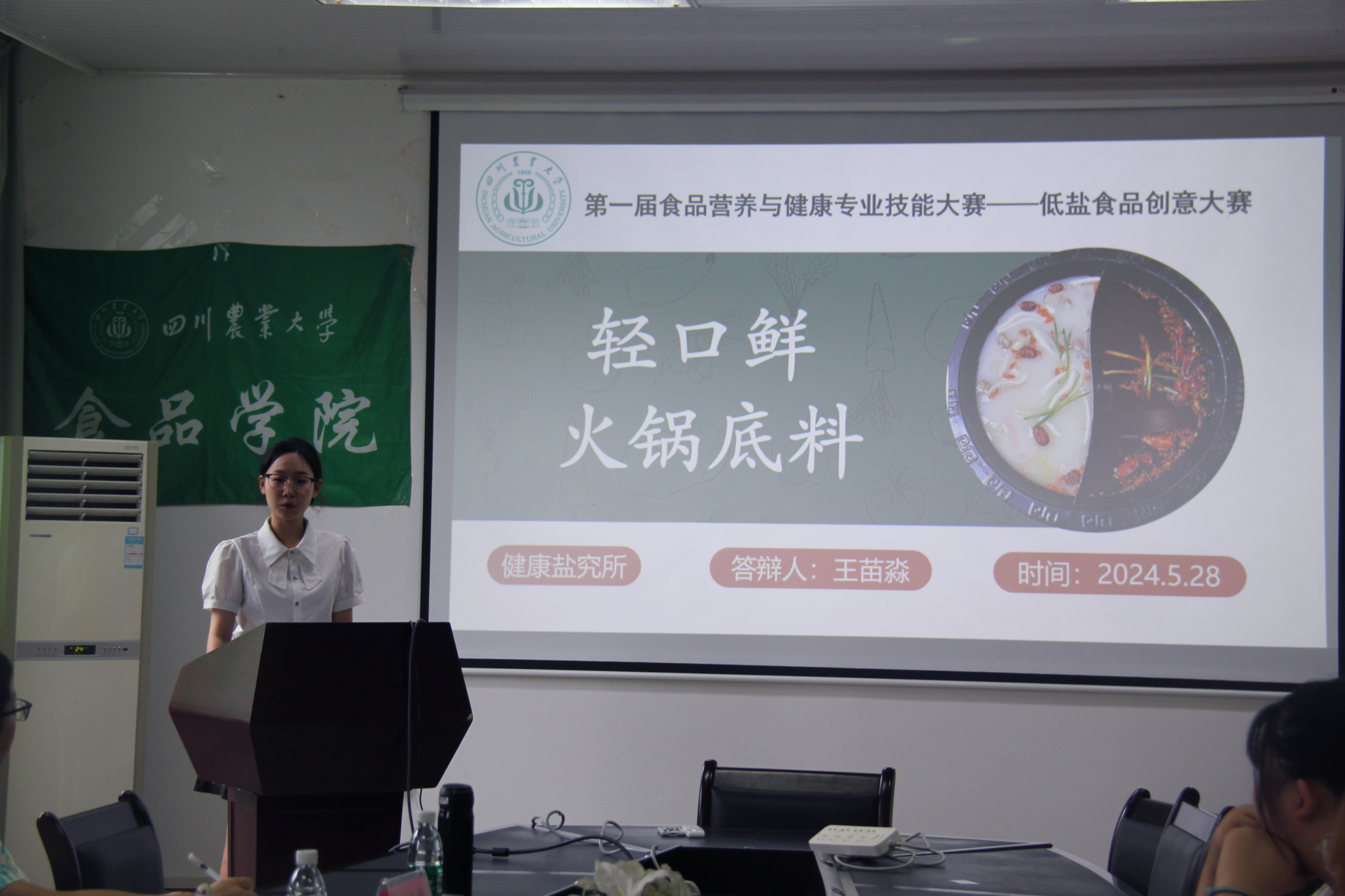 自活动开展以来,我院同学踊跃报名、积极参与,共有64支团队报名参加。经过初赛的严格选拔,共有20支团队入围决赛。决赛现场,各团队围绕“减盐”这一主题,充分发散创新思维,针对日常生活中常见的诸如腊肠、泡菜、火锅等食物,通过使用酵母提取物、钾盐、薄片空心盐、双孢菇等方法,改良工业生产技术路径,达成减盐不减咸的目的,展现了对大赛主题的深刻理解。评委们从技术原理、营养搭配、内外包装等方面进行综合评价并给出指导性意见。