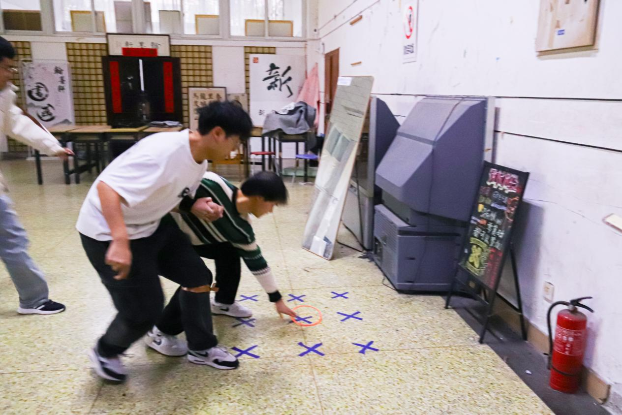 活动伊始,同学们以部门为单位参加各项活动,活动包括“接力五子棋”、“螃蟹运球”、“沙包夺分赛”、“袋鼠跳接力”和“食品闪电侠”五部分。其中“接力五子棋”要求两人一组,实行两人三足模式与部门成员接力完成五子棋落子,率先连够三个的队伍获胜,此活动考察部门成员们的肢体协调能力、默契程度和简单的脑力运算,是快速消除陌生感的破冰游戏。“食品闪电侠”是“接力五子棋”的plus版,成员们每一次需要两人用身体的不同部位运送气球到指定位置后下五子棋,规则与“接力五子棋”相同。“螃蟹运球”则是需部门成员高度配合,两人背靠背将球夹住,像“螃蟹”一样接力运球。“袋鼠跳接力”就是成员们将双腿套在袋子里像“袋鼠”一样在规定的距离折返跳,用时最少的部门获得此项目最高积分。
