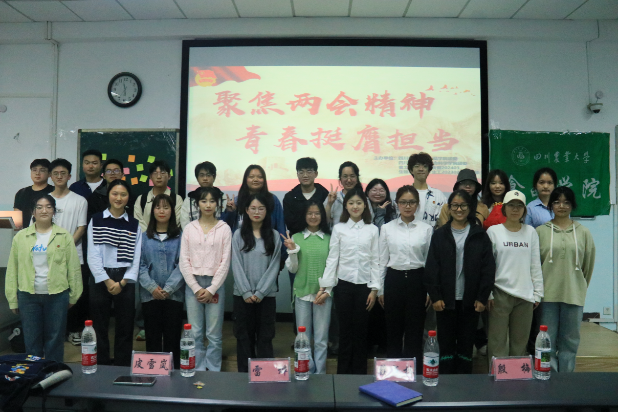 4月11日,为深入学习贯彻习近平总书记全国两会系列重要讲话精神,聚焦用习近平新时代中国特色社会主义思想铸魂育人,把德育贯穿于智育、体育、美育、劳动教育全过程,致力于全面推进中国式现代化的进程。食品学院团委直属部门流动团支部、食工202404、食健202403班团支部和生命科学学院团委直属部门流动团支部、生工202302、生物202301班团支部在十教302室联合举办“聚焦两会精神,青春挺膺担当”主题示范性班团活动。
