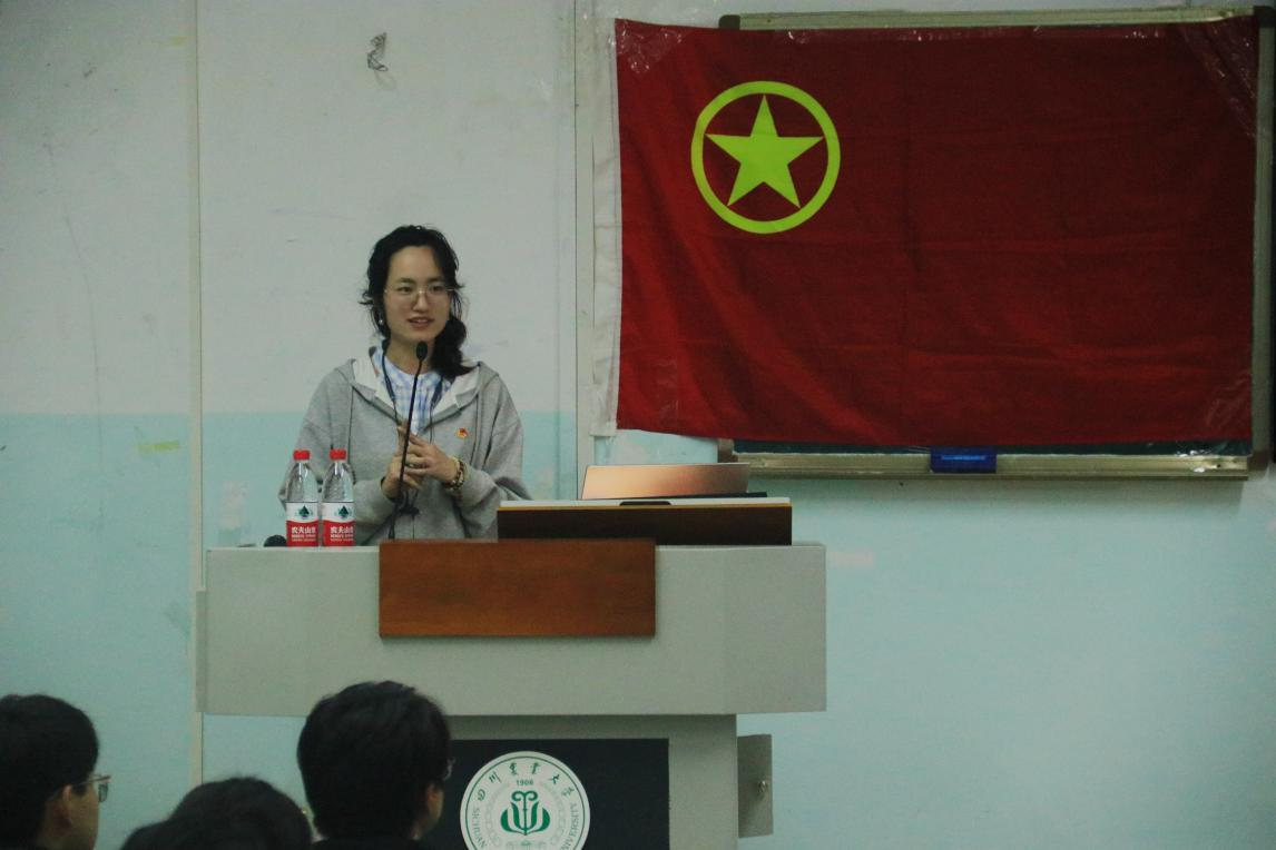 聂苏彤同学现场分段配音演绎西部建设者的真实故事以及播放振兴西部的视频,唤醒广大青年对西部发展、国家发展的热忱。在场同学无不深受触动,内心激荡起强烈的共鸣与思考。通过更加直观地感受西部建设的艰辛和成就,增强了他们的责任感和使命感,从而号召广大青年在“十四五”规划实施中以爱国,爱边疆的赤心报效祖国,建功西部。