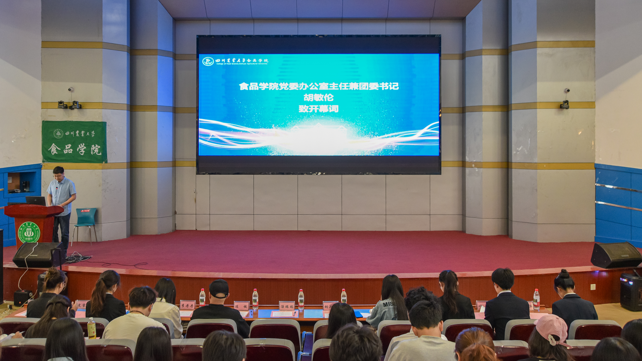 5月18日,食品学院第七次学生代表大会在逸夫楼小礼堂成功召开。本次大会由预备会议及正式会议组成,食品学院党委副书记汤瑞瑞老师、院党委办公室主任兼团委书记胡敏伦老师、党委办陈放、高晓倩、李丹丹老师,食品学院第十七届学生组织主席团及兄弟学院学生代表及食品学院学生代表100余人出席大会,会议由主席团成员朱效仪主持。