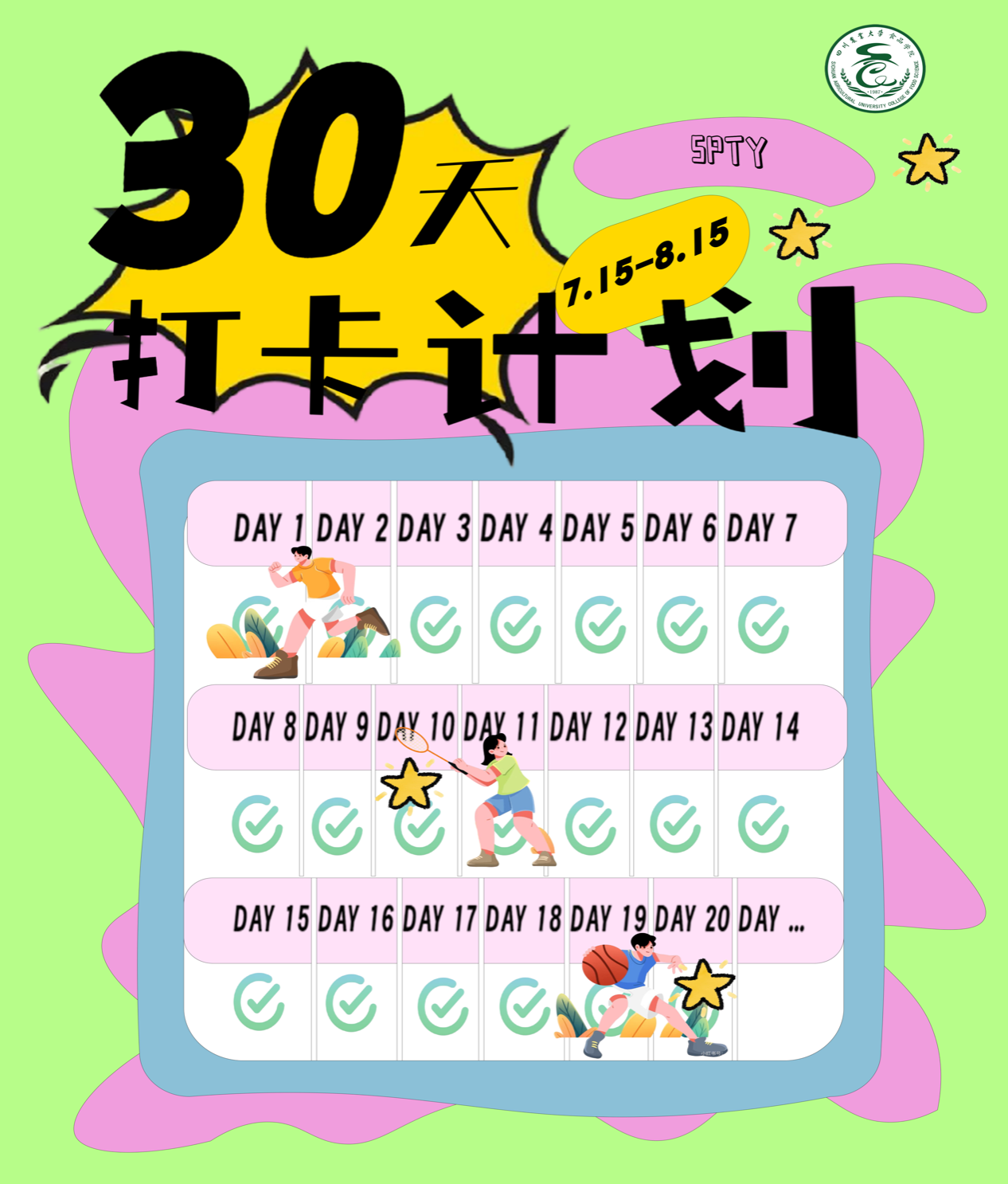 为号召同学们假期中“以运动迎健康,以运动迎强体”,同时提高同学们的身体素质,培养自律品质以及对体育运动的兴趣,食品学院学生会体育部特别开展了食品学院暑期运动打卡活动。