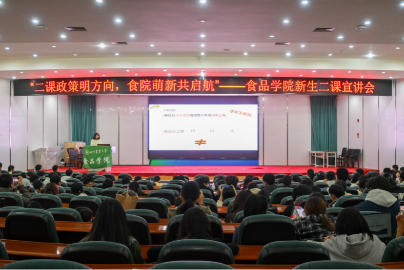 2025年10月28日,为帮助新生了解第二课堂新政策与自主申报相关流程,食品学院第二课堂成绩单运营中心主办的“二课政策明方向,食院萌新共启航”宣讲会在十教小礼堂成功举办!