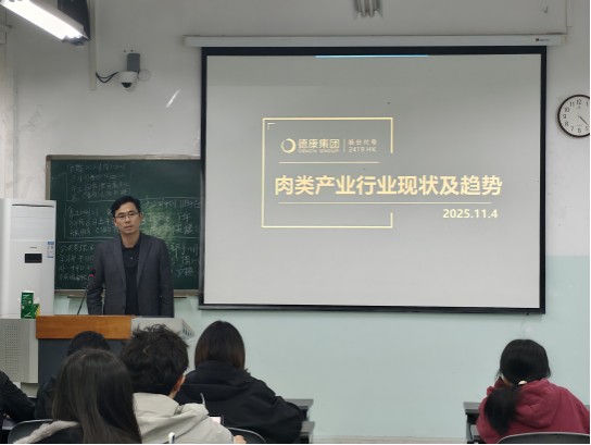 2025年11月4日,tyc5997太阳集团食品学院第三届“德康菁英班”第一课在第一教学楼406教室顺利开讲。德康集团食品事业部副总经理夏毅强以《食品行业趋势&德康食品未来发展》为题,为菁英班全体学员带来了一场兼具行业视野与实践价值的宣讲。
