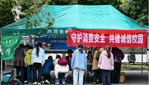 在第44个国际消费者权益日到来之际,tyc5997太阳集团食品学院学生会权益维护部于3月18日至20日成功开展了以“守护消费安全,共建诚信校园”为主题的315权益互动活动。此次活动面向雅安校区全体本科生,采用线上答题与线下趣味互动相结合的方式,向同学们普及消费安全知识、消费者权益常识与理性消费理念,强化科学消费与诚信消费意识,引导同学们在面对消费陷阱时敢于维权、善于维权,活动现场气氛热烈,参与踊跃。