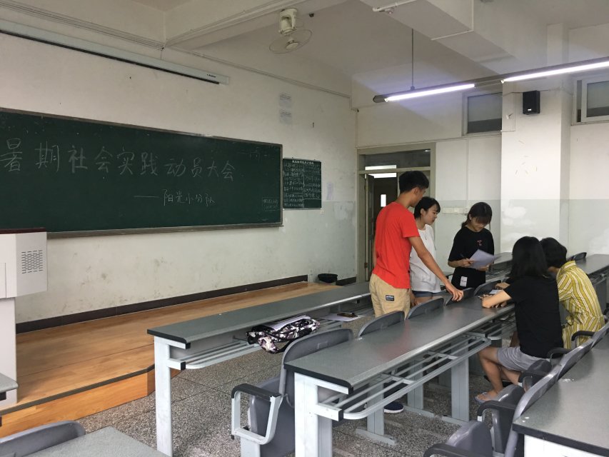 2018年7月1日下午15时30分,阳光小队全体成员于十教A212开展2018年暑期社会实践动员大会。本次大会主要是确定实践活动主题、具体实践项目以及成员的工作分配。