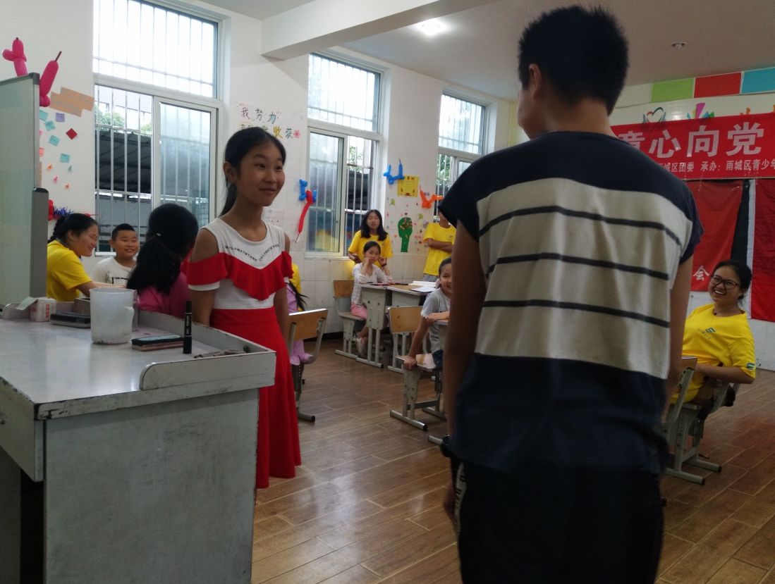 恰逢中国共产党成立97周年,“南郊蓝莓”小队于雅安市南郊乡中心校举办的以“童心向党”为主题的开营仪式在建党节这天正式开始。