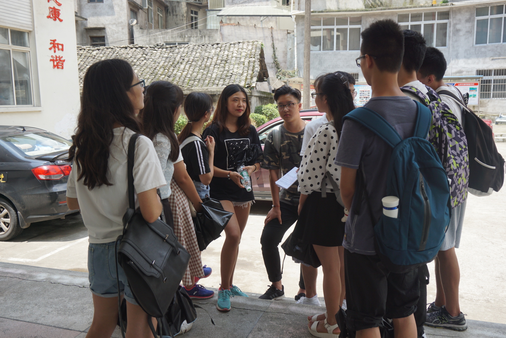 爱烛团队成员在工作人员的带领下到达村里面,村中老人有的坐在门口凝视远方,有的背着背篼准备去干农活,有的佝偻着腰背卖力地挥舞着农耕用品。队员们热情地给村里的老人们问好,老人们布满皱纹的脸上浮现出一丝和蔼的笑容。队员们感受着生活的艰辛以及一切的来之不易,对该次公益活动的热情只增不减。今日实地考察主要是了解活动对象的分布情况来后面工作的分配做准备。在工作人员的带领下,爱烛团队成员一边听取工作人员对村内基本情况的介绍,一边和工作人员商讨之后几天的活动安排。