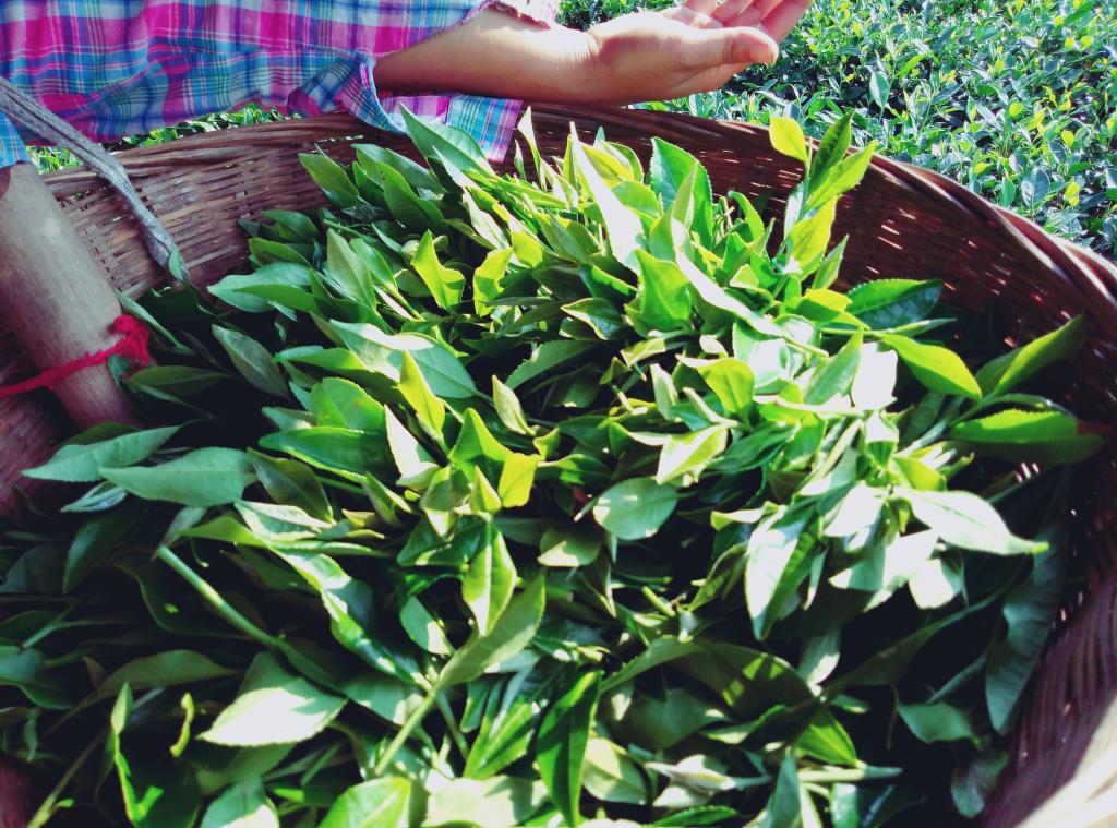 从合江镇沿着一条小路上山,“万亩无公害茶园示范基地”映入眼帘。一位大姐向小组成员们介绍道,合江素来就以茶叶闻名,几乎家家都种茶,她十多岁就开始采茶,小孩上山采茶也是常有的事。她还说,茶叶的采摘季节多从正月开始,她现在正在采的已经是第二批茶叶了,前一批已经“打过”,正在等待长出第二批芽来。
