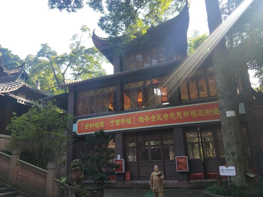 早上8时,丝路奇缘队集合前往第一个目的地——金凤寺。去金凤寺得经过一条陡且高的阶梯路——天梯。到达了金凤寺,队员们一边参观寺庙,一边接受着参观寺庙内部带来的视觉享受和精神洗礼。偌大的一座寺,其环境清幽,树林茂密,其间古亭,又有僧人读卷,孩童执笔,是一个修心养性的好地方。