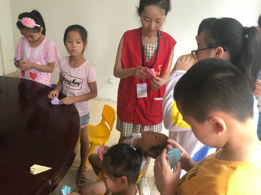今日活动吸引了20多人参加,签到后,志愿者安排进行了本次夏令营的最后一次太极拳教学,过程中发现小朋友们的动作越来越标准,太极拳教学并未完成整套教学,剩下部分是本次夏令营的最后作业,借此希望营员们能够自己学习同时回顾夏令营期间学到的知识。此后,大家一起进行了“你说我猜”的游戏,他们形容得绘声绘色。接下来是趣味折纸,在折纸环节中,他们依旧热情不减,兴趣不减,在这个环节志愿者还给他们发放了事先准备的绿叶,让他们写上想说的话或祝福,挂在成长树上,记录下又一天的快乐。