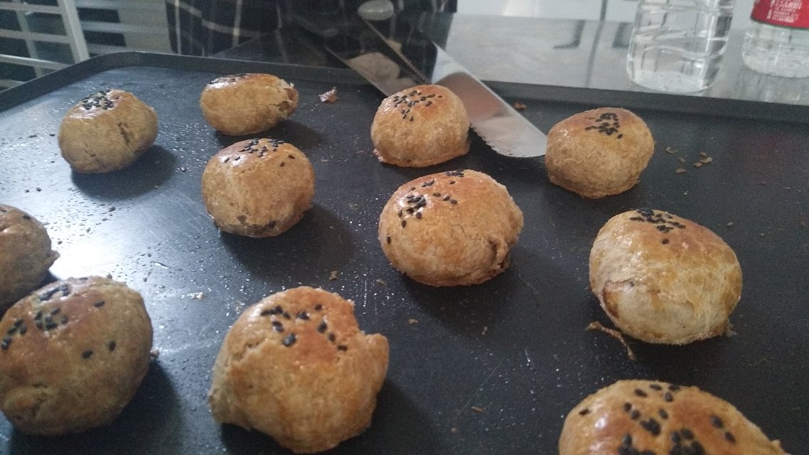 本次预实验是在吸取上一次的经验之后,在基础上加以改进创新完成的。此次实验根据老师和师姐的建议将油料从黄油换成了猪油,并且将猪油做成了起酥油,同时加大了红糖和椰蓉的计量,将花生碾碎来保证更好的口感和风味。除了在原料种类和成分计量上的改进之外,成员还从本次预实验中总结到一些烘焙饼类糕点的注意事项:首先,和面时,水的用量要适中,不能太多也不能太少;其次,在烘烤时,下底板的温度不宜过高,烘焙时间不宜过长,以避免焦底,最好是分不同的温度来测最佳烘焙时间;并且,需要在实验的过程中测出最佳温度,以保证产品的最佳质量。由于艾叶粉味苦,为了使产品色香味俱佳,就需要先测试5克,观察颜色是否好,味道是否还苦。