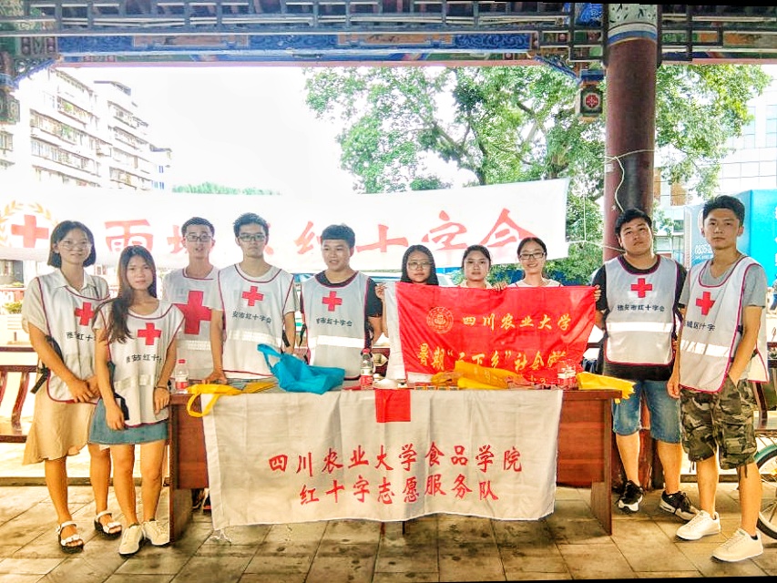 2018年7月25日,tyc5997太阳集团食品学院雅安市红十字志愿服务队在新康路社区廊桥处进行了“点燃青春岁月,传播人道精神”为主题的宣传活动,主要向社区人员普及三献知识和急救知识。新康社区居委会负责人罗先生对该该活动表示支持和鼓励,并为该服务队提供了桌椅场地等帮助。