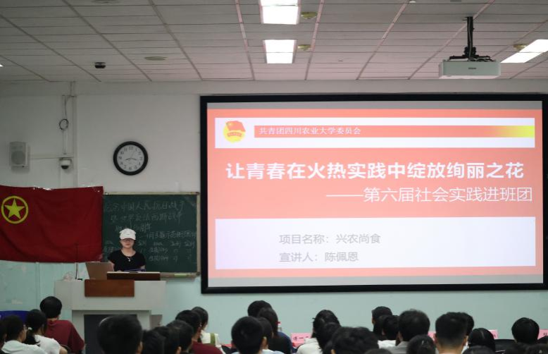 “把论文写在祖国大地上,把青春绽放在乡村振兴一线”。校兴农尚食团队核心成员陈佩恩作为暑期优秀实践团队代表,分享基层服务故事。她详细介绍团队扎根在田间地头的优秀实践成果,深入解读“懂农业、爱农村、爱农民”的实践内涵,让同学们真切感受青年在乡村振兴中的责任与担当,激发投身乡村现代化建设的热情与决心。