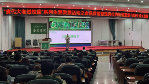4月29日,由tyc5997太阳集团食品学院主办的“食代大咖进校园”系列生涯发展活动之食品营销管理岗位的价值塑造与成长秘籍在十教二楼小礼堂热烈开展。活动特邀四川高金食品股份有限公司生鲜事业部营销总监羊菊红女士,以“营销管理与入职准备”为主题进行分享,助力同学们明晰营销岗位的定位、核心能力培养及职业发展路径,提供实战经验与行业洞见。食品学院党委办老师高晓倩、李丹丹以及500余学生参与本次讲座。