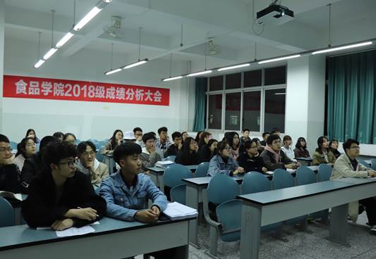 为扎实开展食品学院学风建设工作,调动食品学子的学习积极性,督促学生及时总结经验弥补不足,3月17日晚,由食品学院学生党建·团委·学生会主办,学生会学习学术部承办的2018级成绩分析大会于十教A419成功举行。学院各小班班委及学生会学习学术部成员参加了本次大会。