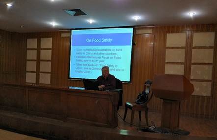 任教授首先生动介绍了自己的教育经历、任职经历以及被他比喻为“工具箱”的知识、社会技能。随后,任教授就食品安全问题分享自己的见解,并重点就近年来为中美食品安全交流搭建的平台进行了阐述。同时,他还分享了最近召开的国际食品安全与健康会议的精彩论点和食品安全监管趋势。