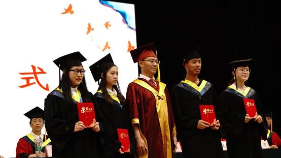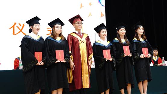 在悠扬的校歌声中,学院副院长、党委副书记、院学位评定分委员会委员、博士生导师张志清教授宣读各专业授位学生名单,大家分组上台由在座老师颁发学位证书并进行授位拨穗。等候在台下的学生亲友为授位完成的毕业生送上了鲜花与掌声。