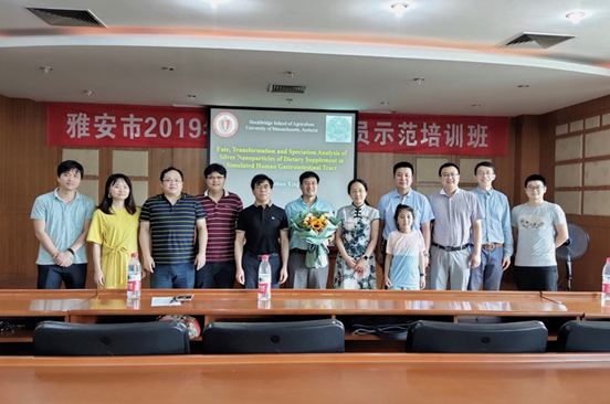 6月22日下午3点,应食品学院邀请,美国麻省大学终身正教授、北京大学客座教授邢宝山在雅安校区逸夫楼学术报告厅作了题为“膳食补充剂中银纳米粒子在模拟人胃肠道内的去向、转化及形态分析”的学术讲座。讲座由食品学院院长李诚主持,食品学院师生100余人聆听报告,成都理工大学蒲生彦教授、王朋教授,西南科技大学的王彬副教授也专程参加了本次学术报告。