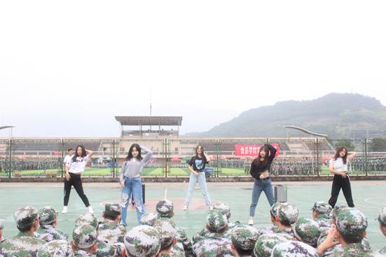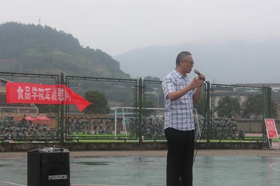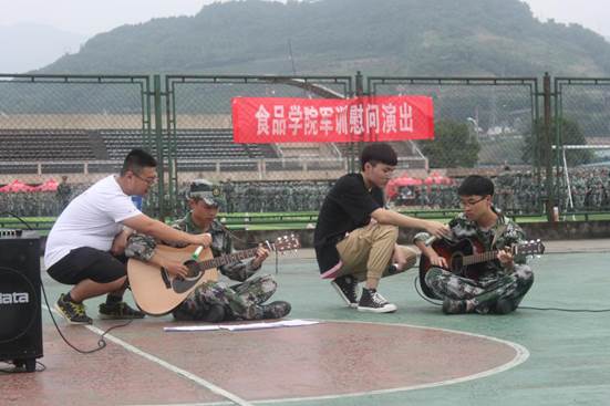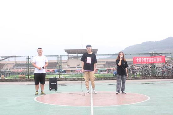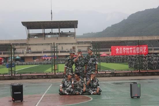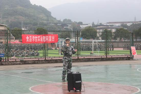 9月7日下午4时,天气突变,秋雨淅沥,食品学院新生军训场地却歌声环绕,笑声不断。原来是学院团委学生会的同学给正在三区操场军训的2019级新生带去了一场军训慰问演出。