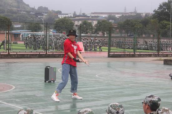 在演出接近尾声时,主持人邀请一直在一旁观看表演的曾书记加入表演同乐。曾书记夸奖了同学们焕然一新的精神面貌,同时表达了对教官认真负责地训练的感谢后,为大家带来了一曲经典红歌《打靶归来》,歌声洪亮,极大地振奋了新生们的精神。