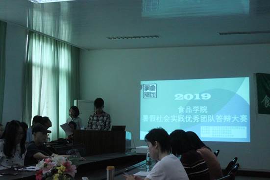 食品学院举行2019年暑期“三下乡”社会实践优秀团队答辩会8月30日中午食品学院2019年暑期“三下乡”社会实践优秀团队答辩回在三教206举行,本次答辩会特邀食品学院团委老师及主席团成员担任评委。今年暑假我院共有54支社会实践队伍奔赴各地进行各类实践和调研活动,其中共有15支优秀队伍来到本次答辩现场,展示他们的实践项目。