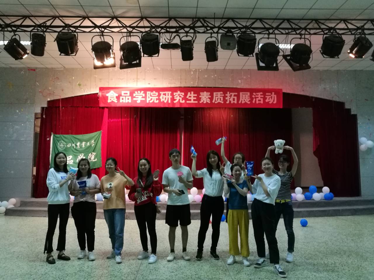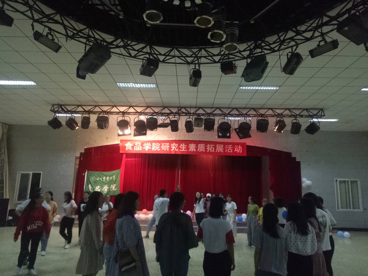 9月5日晚,食品学院研究生会在老区食堂四楼素质文化中心成功举办“丹桂飘香季,相逢正当时”2019级研究生素质拓展活动。为使研究生新生之间增进了解,拉近彼此的距离,本次活动以团队合作的方式,依次进行你的名字(蒙眼猜队友)、保护国宝(沙包对抗赛)、把耳朵叫醒(听歌识曲)、揣好人民币(抱团)等小游戏。同学们积极踊跃参加游戏,为赢得团队胜利使出浑身解数,沙包对抗赛拉满大家的当日运动量,中华小曲库们更是在听歌识曲环节不断刷新自己团队的得分,整场活动气氛轻松愉悦。活动中场,更有惊喜的才艺表演环节,新同学站上舞台为大家带来《光年之外》、《房间》等歌曲,并对各位同学献上最诚挚的祝福。