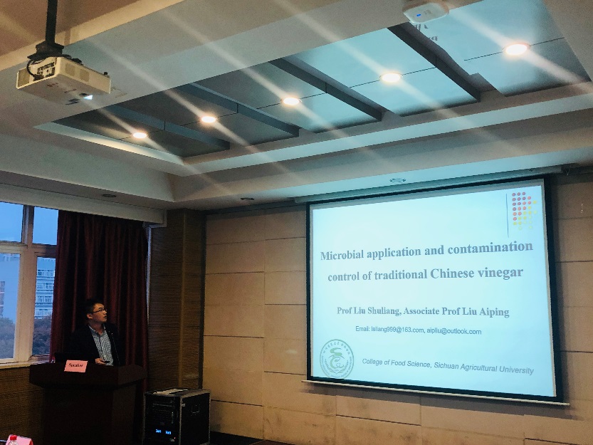 11月3日至6日,2019传统发酵食品国际学术论坛在武汉华中农业大学举行,来自丹麦哥本哈根大学、西班牙科尔多瓦大学、韩国檀国大学、江南大学、华南理工大学等中外专家和发酵食品企业代表共100余人参加。我院教师刘爱平受邀参会,并就刘书亮教授指导下合作开展的食醋研究项目作“Microbial application and contamination control of traditional Chinese vinegar(中国传统食醋微生物应用与污染控制)”学术报告。报告首先简要介绍了tyc5997太阳集团食品学院概况,然后就四川发酵食醋以及我院开展的食醋研究成果展开论述。